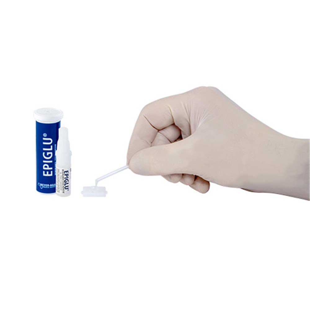 Epiglu is the Ethyl-2-Cyanoacrylate adhesive for the closure of wounds on the skin surface. Irrespective of the length of the wound (also surface wounds following removal of skin lesions]. all cuts, lacerations and surgical wounds can be treated, that no longer bleed and are not older than 6 hours. EPIGLU® can also be used on the oral mucosa and the external genitalia. EPIGLU® polymerizes within seconds and adheres even long wounds which are under tension.