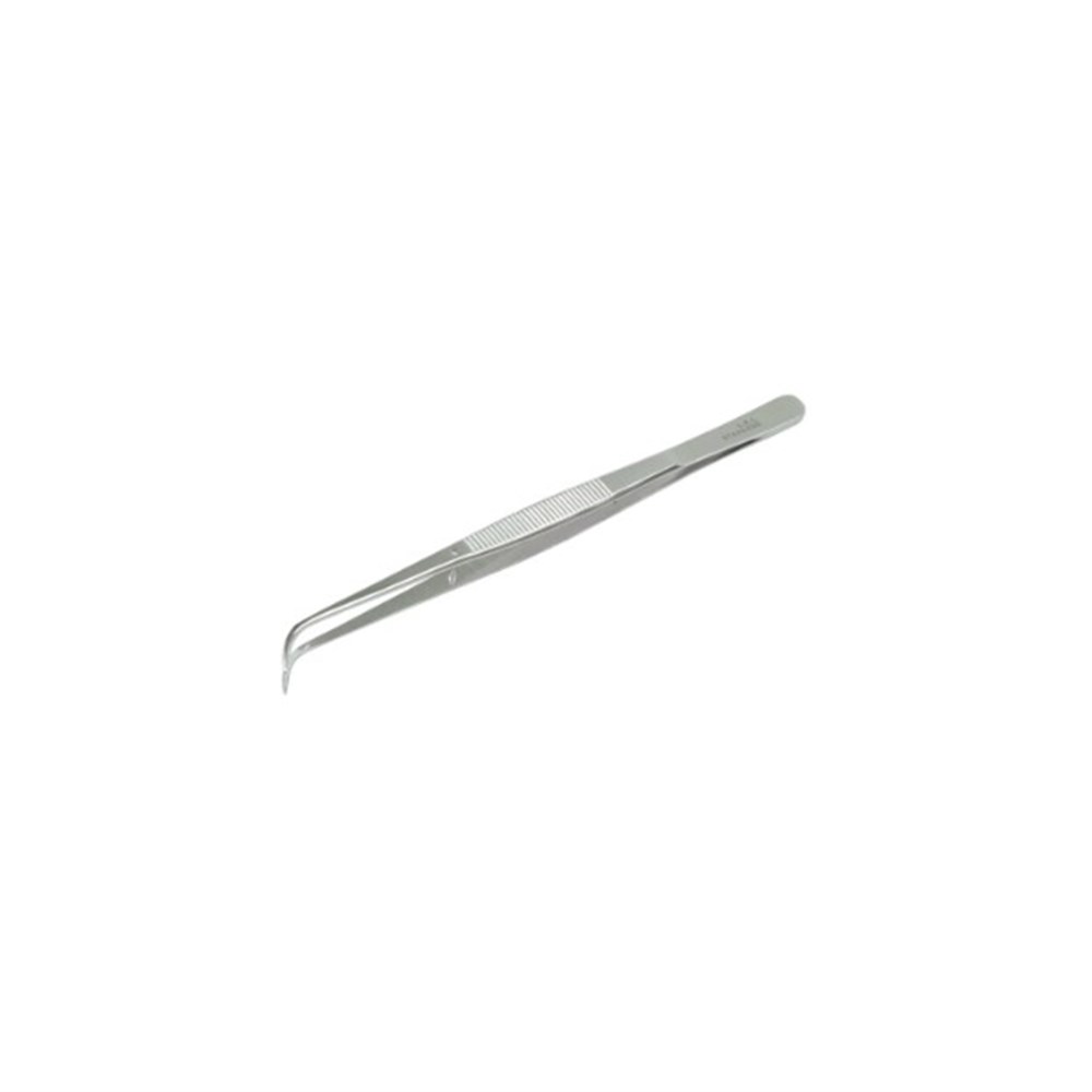 Angled, fine-tip forceps for precise intra-oral handling and placement.