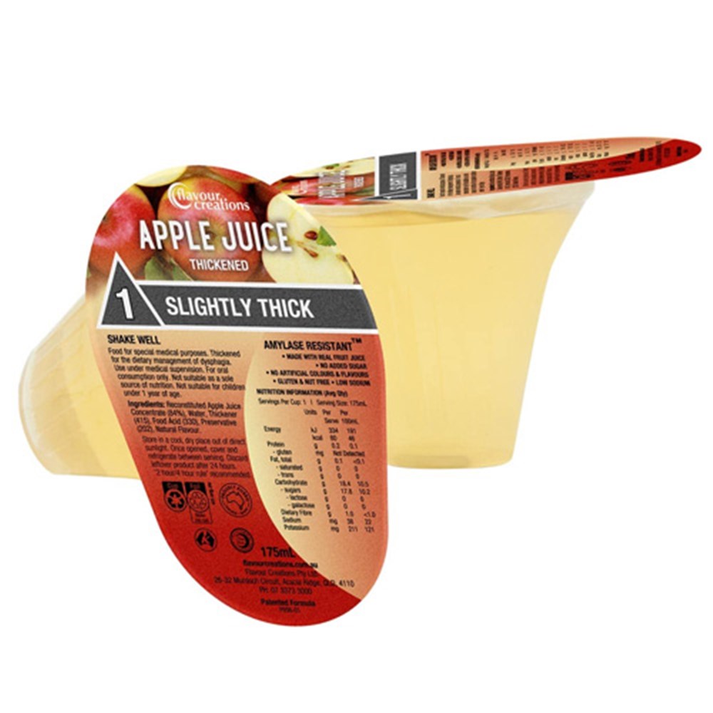 A wonderfully refreshing medium-sweet apple juice made with real fruit juice. Boost hydration with the ready-to-drink crisp Apple Juice, thickened for those with swallowing difficulties (dysphagia), and packed in the award-winning Dysphagia Cup.
