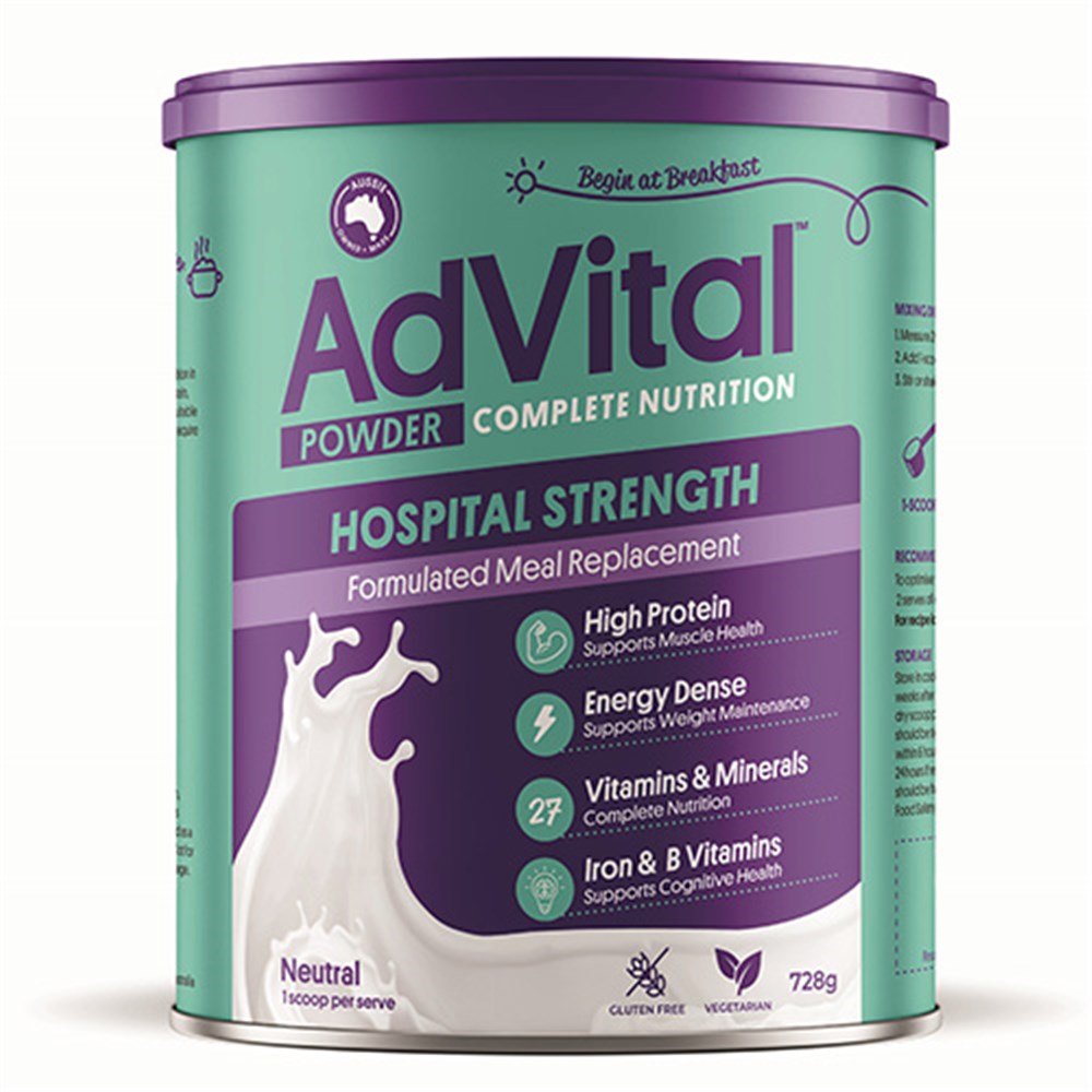 Proudly Australian-owned and made, AdVital Hospital Strength Neutral Powder can be added to your favourite meals and drinks to support muscle health, immune function, weight maintenance and cognitive health.