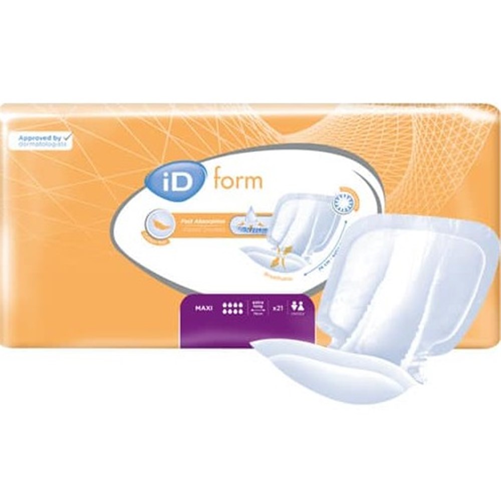iD Form Maxi Size 3 (3900 mL) shaped anatomical pads are designed to support people managing moderate urinary incontinence, including small fluid losses, and who require assistance with toileting. With a high absorbency capacity, these pads help keep the skin dry and protected for extended periods.