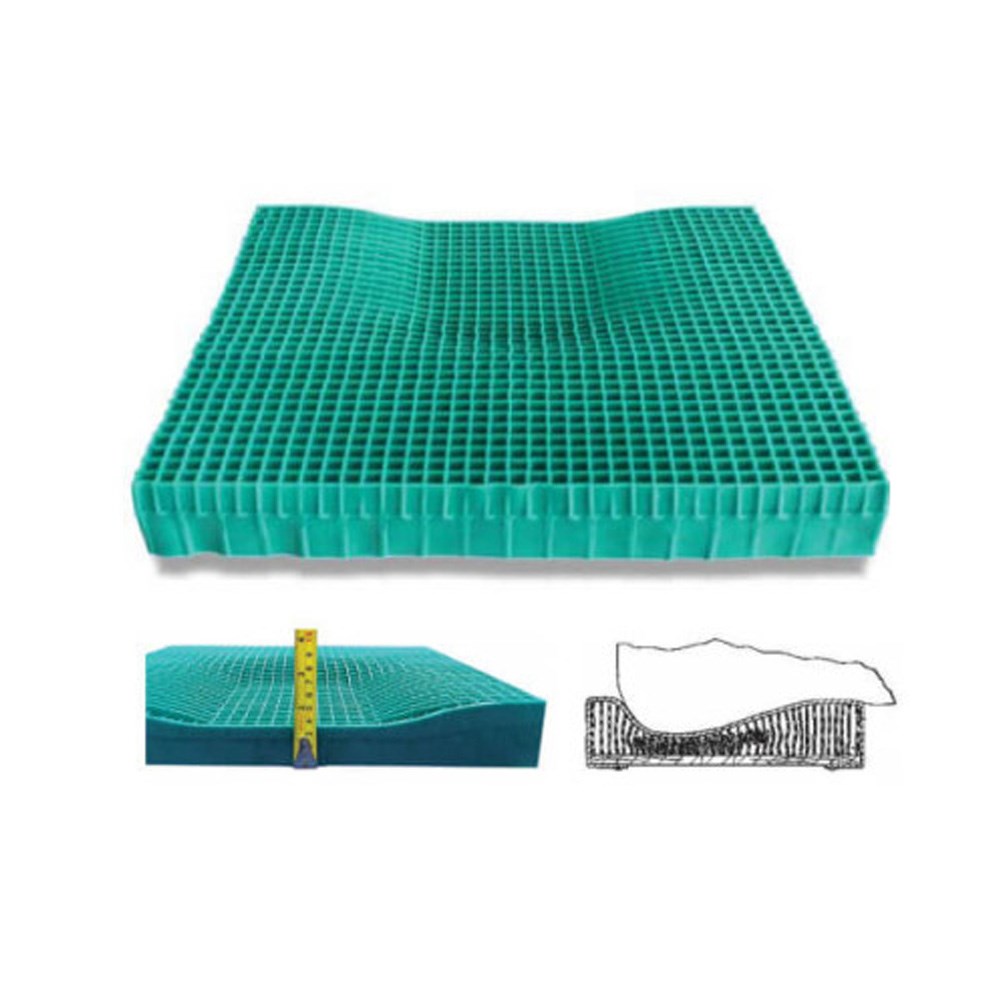 - Bottom Layer: Thicker gel walls with a wider grid for deep postural support.